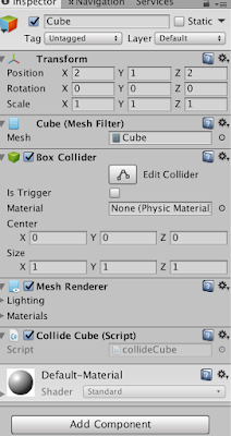 接著在Cube裏加入一個Script,就命名為CollideCube好了.